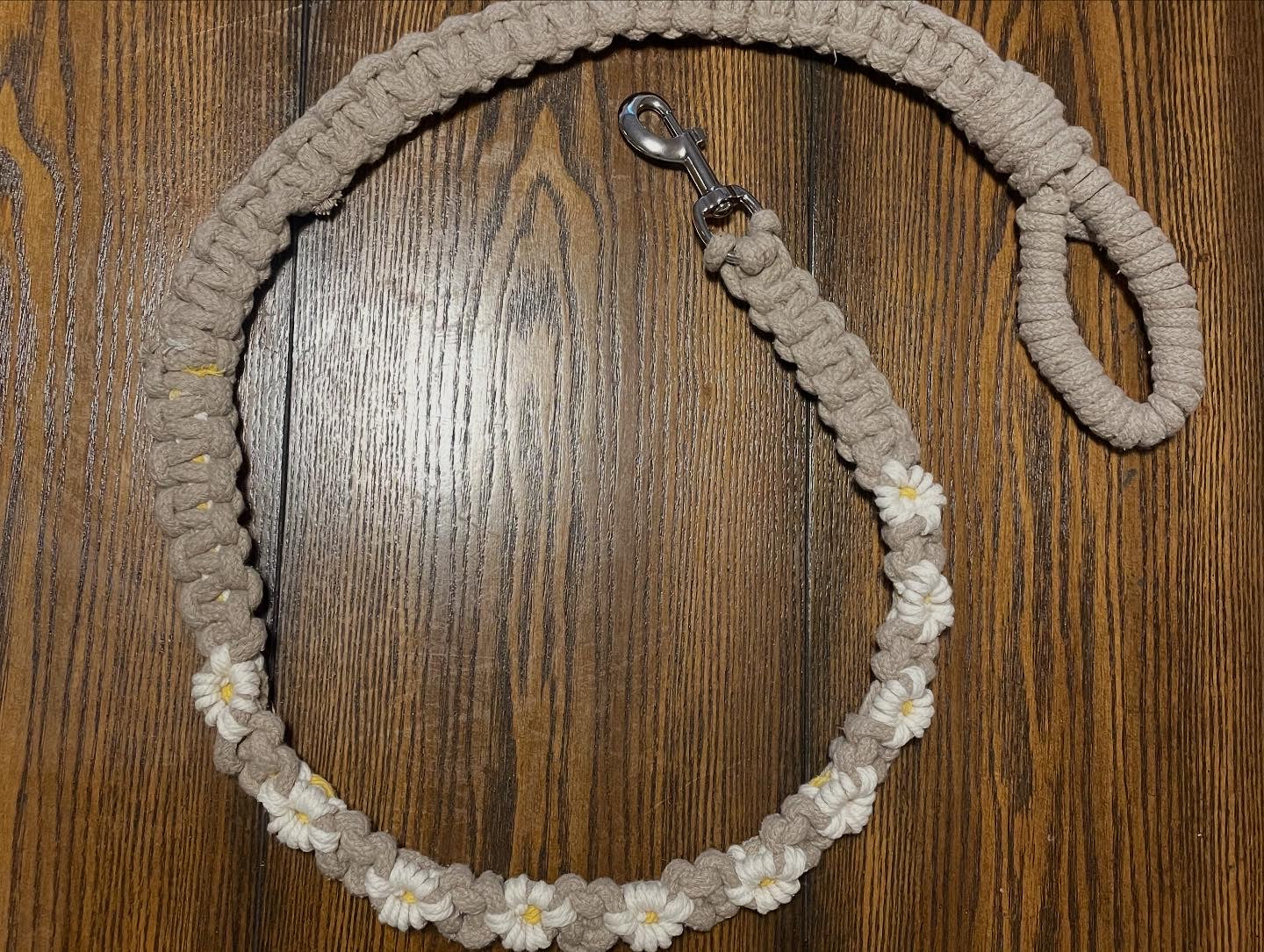 Correa para mascota tejida a mano con bandola plata. 1.20 mts de largo.