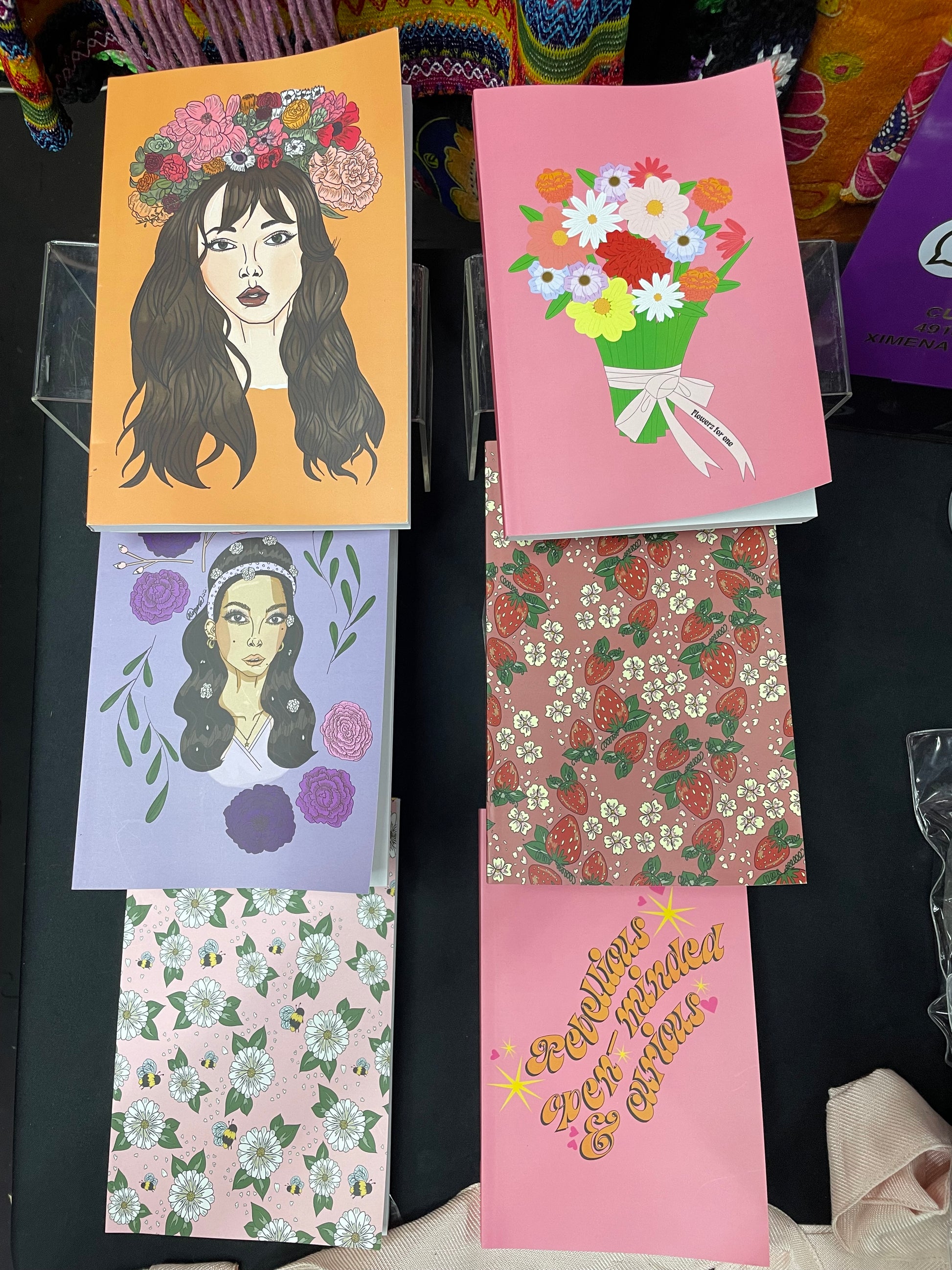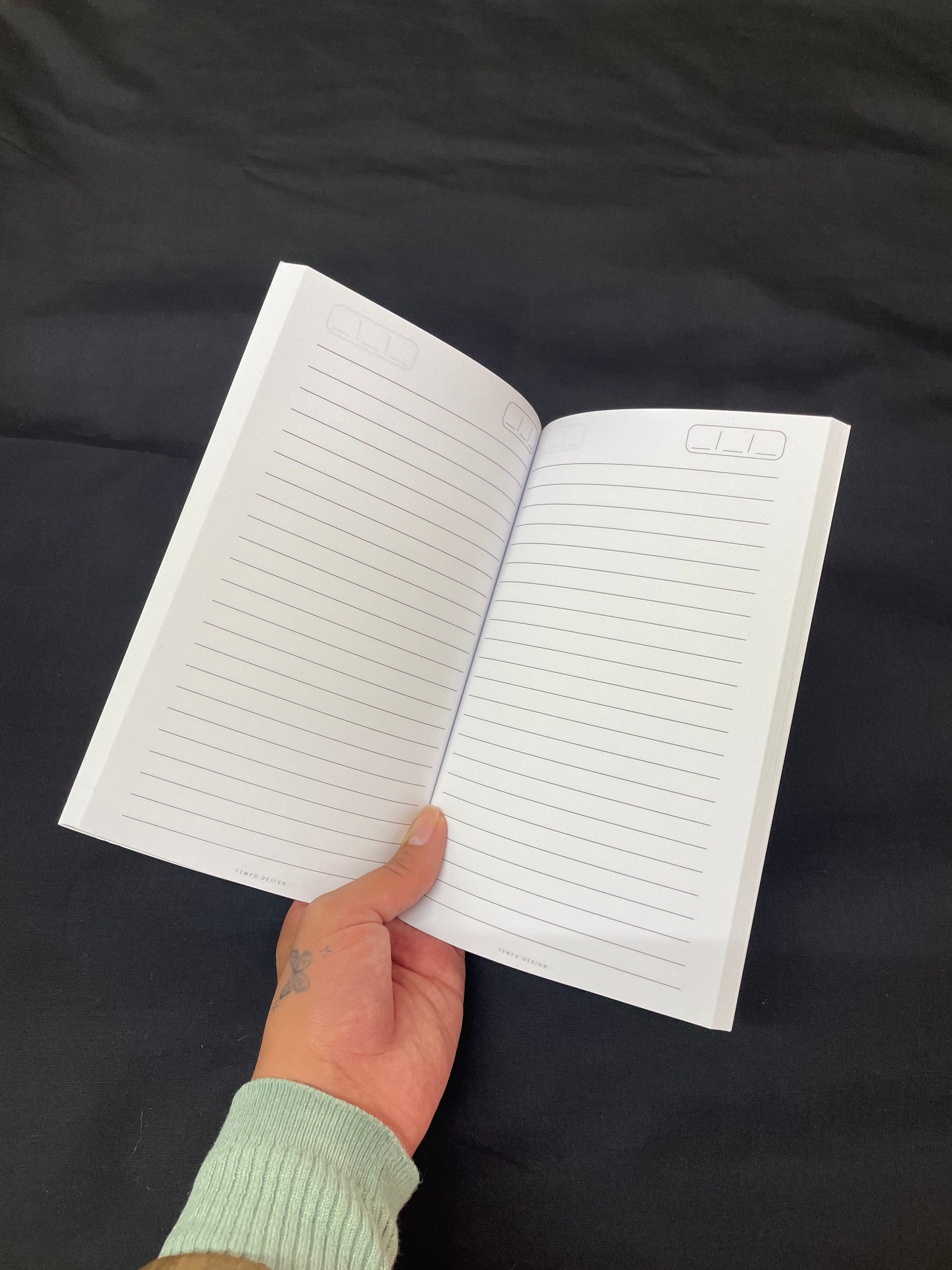 Libreta con técnica hoy melt con hojas rayadas y diseño de verano.
